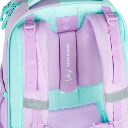 Zaino scolastico Skate Max Sweet è la scelta ideale per bambini e studenti con altezza da 155 a 185 cm, corrispondente approssimativamente dalla terza classe. Offre non solo un sistema di schienale regolabile con possibilità di quattro taglie, ma è anche realizzato in materiale riciclato e impermeabile che garantisce lunga durata e protezione dalle intemperie.