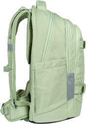 Lo zaino scolastico Skate Max Mentolo pesa meno di 1150 g e ha un sistema di schienale regolabile che offre fino a quattro diverse dimensioni. Ideale per studenti da 155 a 185 cm. Il materiale riciclato è idrorepellente e include elementi riflettenti per garantire la sicurezza.