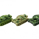 La confezione in box contiene 10 pezzi e i carri sono disponibili in 3 colori accattivanti, così i bambini possono creare la propria unità e sviluppare i loro scenari di gioco. Le dimensioni compatte 11 × 5 × 4 cm si adattano perfettamente alla mano dei più piccoli.