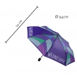 Elegante ombrello pieghevole con motivo scuro ed elegante di Wednesday, ideale per zaini e borse. Il design compatto consente un facile trasporto e una protezione affidabile dalla pioggia.