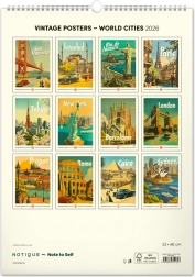 Scopri la nostalgia dei decenni passati con un calendario da parete pieno di poster vintage delle città del mondo, che daranno vita all'atmosfera della tua casa.