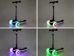 - Illuminazione LED (ruote anteriori, telaio, pedana) + musica