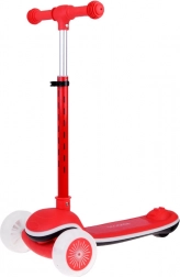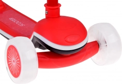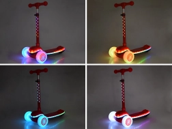 Il monopattino è progettato per le prime uscite e per sviluppare l’equilibrio. Le doppie ruote anteriori e l’ampia piattaforma aumentano la stabilità, mentre il manubrio regolabile in altezza si adatta alla crescita del bambino. I LED colorati nelle ruote e nel telaio illuminano ogni corsa, con possibilità di scegliere fino a 20 modalità luminose e 4 modalità musicali.