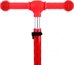 Altezza del manubrio a tre posizioni con blocco e molla, impugnature antiscivolo e ampia pedana per una guida comoda e sicura.