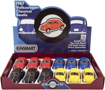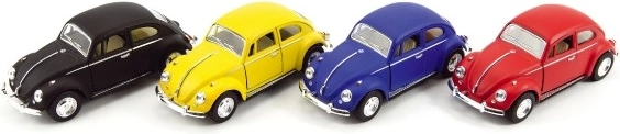 Modello stiloso e fedele della leggendaria VOLKSWAGEN Beetle del marchio KINSMART che conquisterà bambini e collezionisti. Grazie al corpo in metallo e alla retrocarica l'auto parte scattante appena la rilasci. Compatta lunghezza 13 cm, 4 varianti di colore e lavorazione di qualità in metallo e plastica. Adatta dai 3 anni.