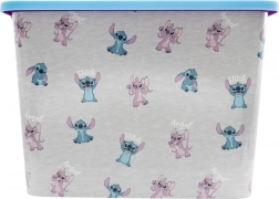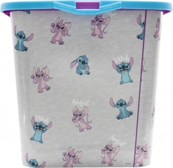 Pratica scatola di plastica per lo stoccaggio con motivi dei personaggi preferiti Stitch e Angel. Ideale per un uso versatile, come il riponimento di giocattoli e costruzioni.