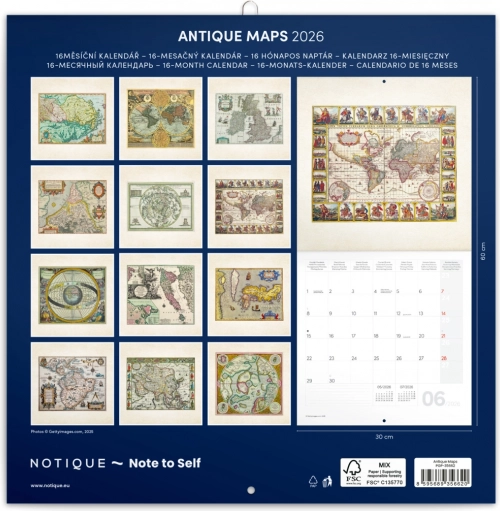 Il calendario con note Mappe antiche 2026 è il compagno perfetto per l'organizzazione delle attività quotidiane. Contiene: