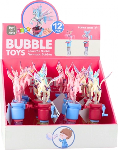 Le bolle di sapone a tema unicorno non sono solo un divertimento classico, ma offrono anche un effetto visivo magico! Questo giocattolo unico, alto 23 cm, è dotato di un meccanismo a manovella che, una volta girato, muove le ali dell'unicorno, creando l'impressione del volo.