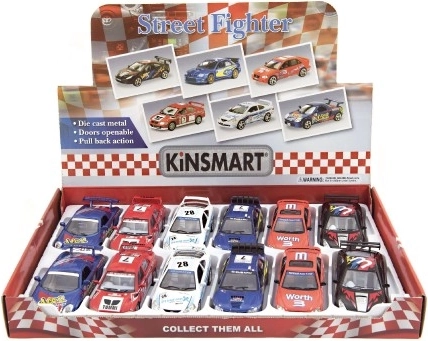 Scopri il mondo della velocità e del divertimento con le mini macchinine KINSMART Street Fighter. La carrozzeria in metallo con elementi in plastica assicura resistenza e al tempo stesso una cura dei dettagli come livree da corsa, spoiler e cerchi sportivi.
