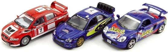 La combinazione di metallo e plastica garantisce resistenza e un aspetto fedele. Livree da corsa, spoiler e numeri rendono le macchinine pezzi da collezione attraenti.
