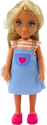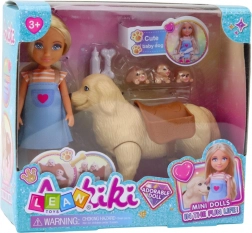 Il Set Mini Bambola con Cane e Cuccioli include una bambola alta 13 cm, vestita con un abito colorato a spalline e scarpette rosa. Il suo viso delicato e i lunghi capelli biondi conferiscono alla bambola un fascino unico.