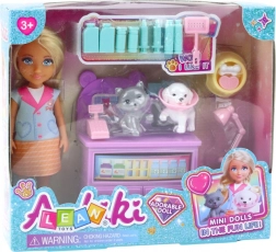 Scopri il mondo della cura veterinaria con la mini bambola, alta solo 13 cm. Vestita con un outfit alla moda che include scarpe sportive e camicetta con la scritta 'Pet', i bambini la ameranno al primo sguardo. Accessori realistici includono anche un cagnolino e un gattino che necessitano di aiuto, e un armadietto medico con una varietà di accessori.