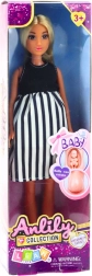 Bambola Anlily Incinta con abito a righe bianco e nero con bambino