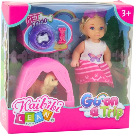 Il set include un piccolo cane - il fedele compagno della bambola, che ha bisogno di cure, cibo e un posto per riposare. Appositamente per lui è pronta una tenda rosa, che funge da cuccia - ideale per il riposo, il gioco o il sonno. Nel set c'è anche una ciotola con un osso e uno snack per scene di gioco realistiche.