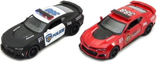 Scegli tra l’auto della polizia ricca d’azione e quella dei vigili del fuoco coraggiosa – entrambe con stemmi e grafiche autentici per un gioco ancora più realistico.