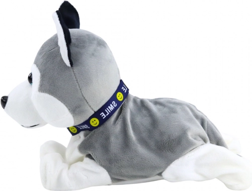 Il cagnolino interattivo di peluche Husky è il giocattolo perfetto per i bambini, che unisce un aspetto adorabile con funzioni realistiche. Realizzato in peluche morbido e piacevole nelle tonalità del bianco e del grigio, il suo aspetto simpatico e gli occhi azzurri attirano l'attenzione dei più piccoli. Al collo porta un nastro decorativo con la scritta 'SMILE' ed emoticon, che dona carattere al cagnolino.