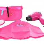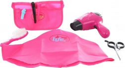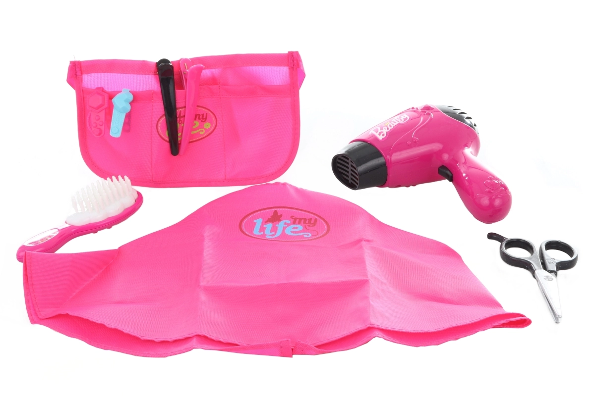 Un elegante set da parrucchiere per piccole star del salone offre tutto il necessario per acconciature creative. Include un asciugacapelli funzionante a batteria, forbici, spazzola, mollette, pinze, mantellina da taglio e tasca portautensili. Giocattolo ideale per sviluppare fantasia e motricità fine dai 3 anni. Accessori in plastica sicuri, facile da usare e dimensioni compatte per giocare a casa e in viaggio.
