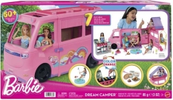 Parti all’avventura con l’iconico playset Barbie Camper dei Sogni con tenda: un veicolo da campeggio trasformabile con sette aree di gioco e oltre 60 accessori per storie senza fine. I bambini adoreranno il camper apribile, il divanetto/pranzo richiudibile, l’altalena, il lounge sul tetto, la piscinetta e il barbecue con effetto cambio colore, che “cuoce” il cibo davanti ai loro occhi. Incluso anche l’impasto per preparare burger per una cucina creativa. Regalo ideale per bambini dai 3 anni.