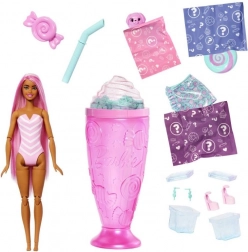 Apri il bicchiere ispirato al milkshake e scopri la bambola BARBIE profumata, accessori alla moda, l’animaletto e la sabbia modellabile per un gioco creativo.