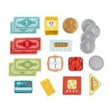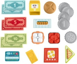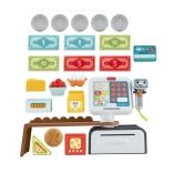 Inclusi banconote, monete, carta di pagamento e alimenti di plastica – tutto il necessario per scenari completi di acquisto, registrazione e pagamento.
