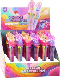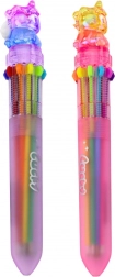 La penna multicolore Unicorn include un meccanismo automatico di selezione del colore: basta premere il pulsante sul lato e scegliere il colore desiderato. Il corpo della penna è decorato con un effetto arcobaleno e una trasparente decorazione di unicorno in cima, che attira l'attenzione e rende la penna un accessorio amato da ogni bambino.