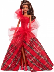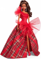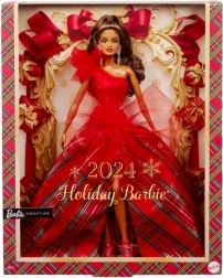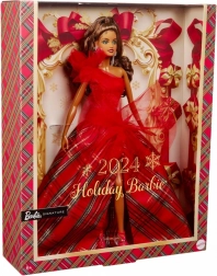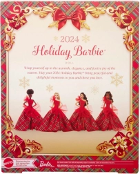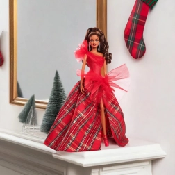 La Barbie Holiday 2024 indossa un impressionante abito bustier di un rosso brillante con una spalla, magnificamente abbinato a una voluminosa gonna da ballo in un classico motivo scozzese. Grandi accenti di tulle conferiscono uno stile classico un tocco moderno, mentre gli orecchini appariscenti enfatizzano l'eleganza complessiva. La bambola è confezionata in un imballaggio ideale per essere esposta, rendendola un regalo perfetto per collezionisti o come unico elemento di decorazione festiva.