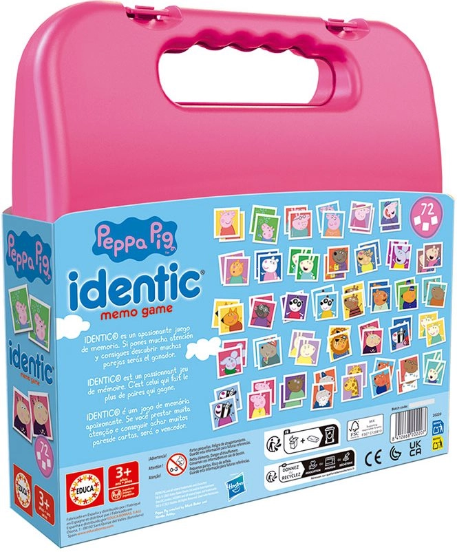 La confezione contiene un totale di 72 carte, il che significa 36 coppie con i motivi del popolare Peppa Pig.