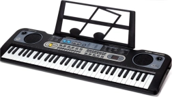 Lo strumento a tastiera elettronico nero è dotato di tasti luminosi e una ricca gamma di funzioni che permettono ai bambini di comporre proprie melodie e riprodurre brani già salvati. Ci sono 6 brani demo, 16 toni, 10 ritmi, oltre alle funzioni di registrazione e riproduzione. Il microfono collegato consente ai bambini di cantare accompagnando la musica e sentirsi su un vero palcoscenico.