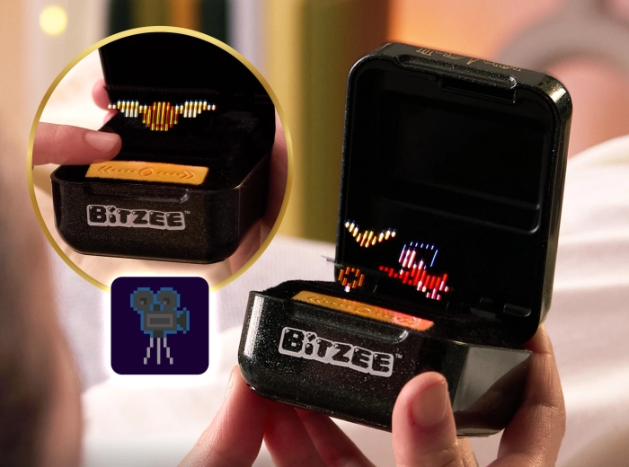 Bitzee HARRY POTTER è una capsula elegante nero‑oro con lo stemma di Hogwarts, che prende vita grazie a un’esclusiva visualizzazione olografica. Risponde a tocchi, scorrimenti, inclinazioni e scuotimenti e ti premia con suoni e animazioni magiche. Ogni interazione fa progredire il gioco e porta nuovi personaggi ed esperienze ispirate ai film.