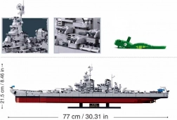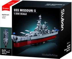 Grazie al kit Sluban, puoi creare un modello dettagliato della nave da battaglia USS Missouri, che una volta assemblata misura 77x21,5 cm. Adatto per bambini dai 10 anni in su, questo kit è ideale per sviluppare la motricità fine e la creatività.