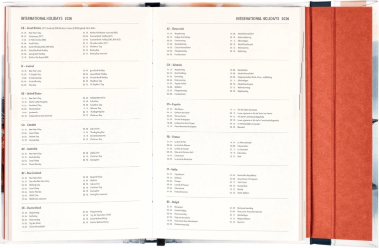 Agenda settimanale con festività internazionali e chiusura magnetica è ideale per tutti coloro che vogliono avere piani ben organizzati grazie allo spazio sufficiente per le note.