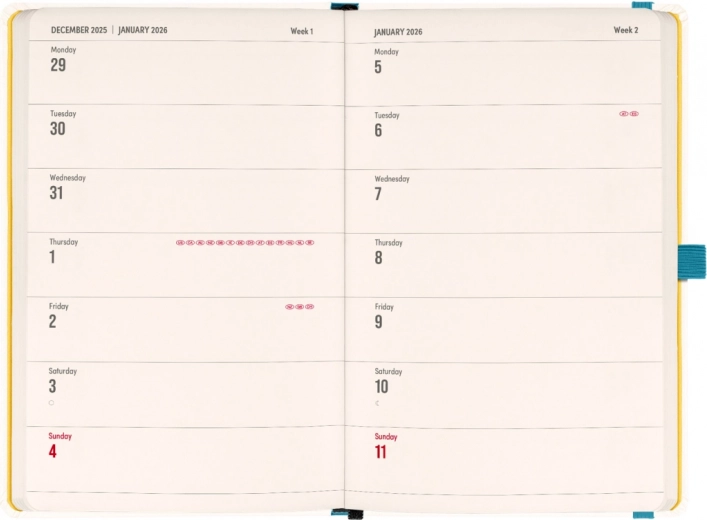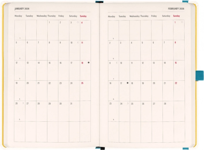 NOTIQUE Planbook Erbario 2026 è la perfetta combinazione di agenda e taccuino in uno. La prima metà offre un calendario quindicinale orizzontale con festività internazionali, che ti permette di pianificare in modo efficiente ogni settimana. La seconda metà include pagine a righe ideali per i tuoi appunti, schizzi o pianificazioni di progetti.