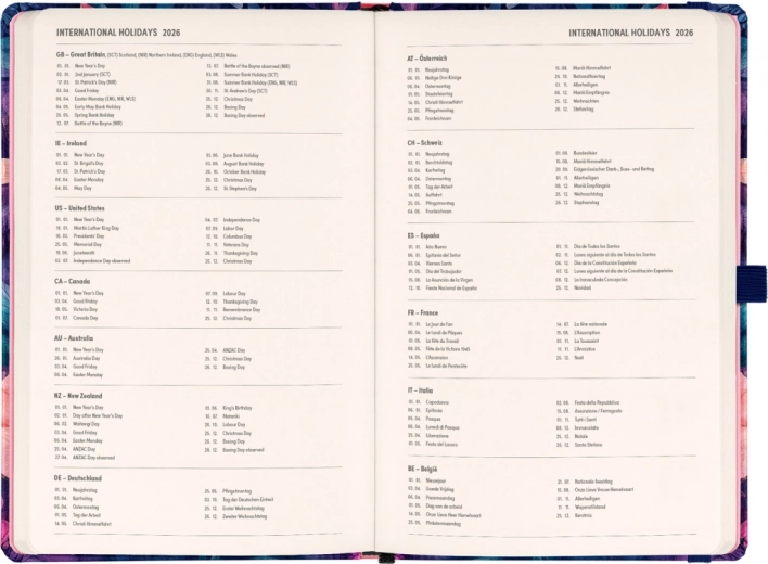Goditi la migliore combinazione di agenda e quaderno con il Notique Planbook. La prima metà di questo prodotto offre un calendario orizzontale di quattordici giorni con festività internazionali, ideale per una pianificazione a lungo termine. La seconda metà contiene pagine a righe dove puoi prendere appunti, idee o piani per il futuro.
