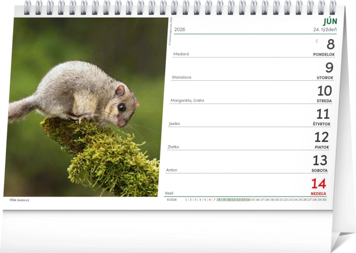 Calendario da tavolo popolare per ogni cacciatore, offre informazioni importanti sulla natura in Slovacchia, arricchite da fotografie di fauna selvatica.