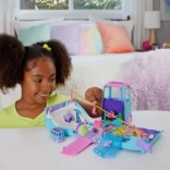 Goditi un'avventura indimenticabile nella natura con Polly Pocket e il suo Van da Viaggio. Decora il tuo camioncino con adesivi carini e aprilo per scoprire funzioni affascinanti e luoghi di gioco, come un impianto di risalita per sciatori e onde per il surf!