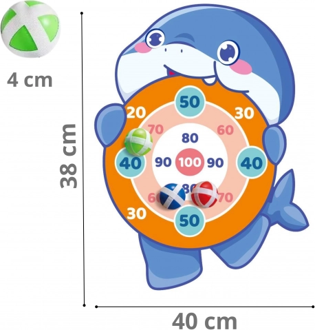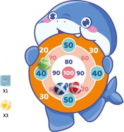 Immergetevi nel mondo del divertimento emozionante con il bersaglio a forma di adorabile squalo del marchio Woopie! Questo bersaglio colorato e vivace, ideale per essere appeso al muro, garantisce ore di divertimento attivo e al contempo sviluppa la precisione e la coordinazione del vostro bambino. Il set include palline morbide che grazie al velcro si attaccano facilmente al bersaglio, facilitando il conteggio dei punti.