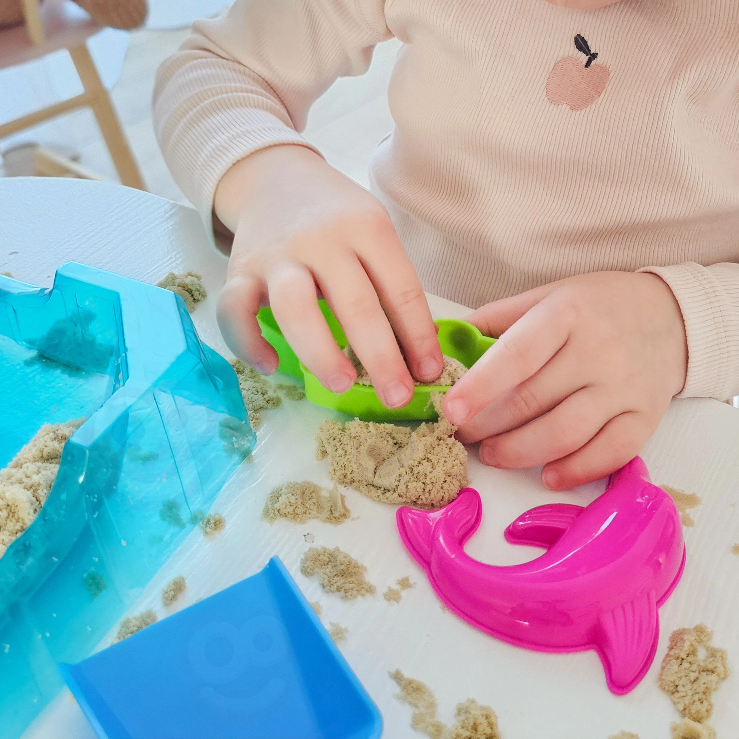 • Divertimento pulito in casa – la sabbia non si appiccica e il vassoio aiuta a mantenere lo spazio pulito.