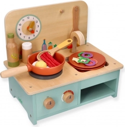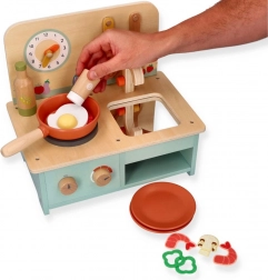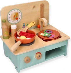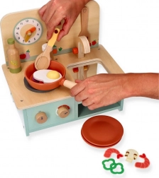 Questa compatta cucina in legno offre ai bambini l'opportunità di partecipare ad attività di gioco di ruolo e sviluppare le proprie abilità. È appositamente progettata per bambini dai 3 anni in su, rendendola ideale per i bambini in età prescolare. La cucina è dotata di dettagli realistici come manopole rotanti e orologi.