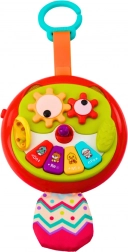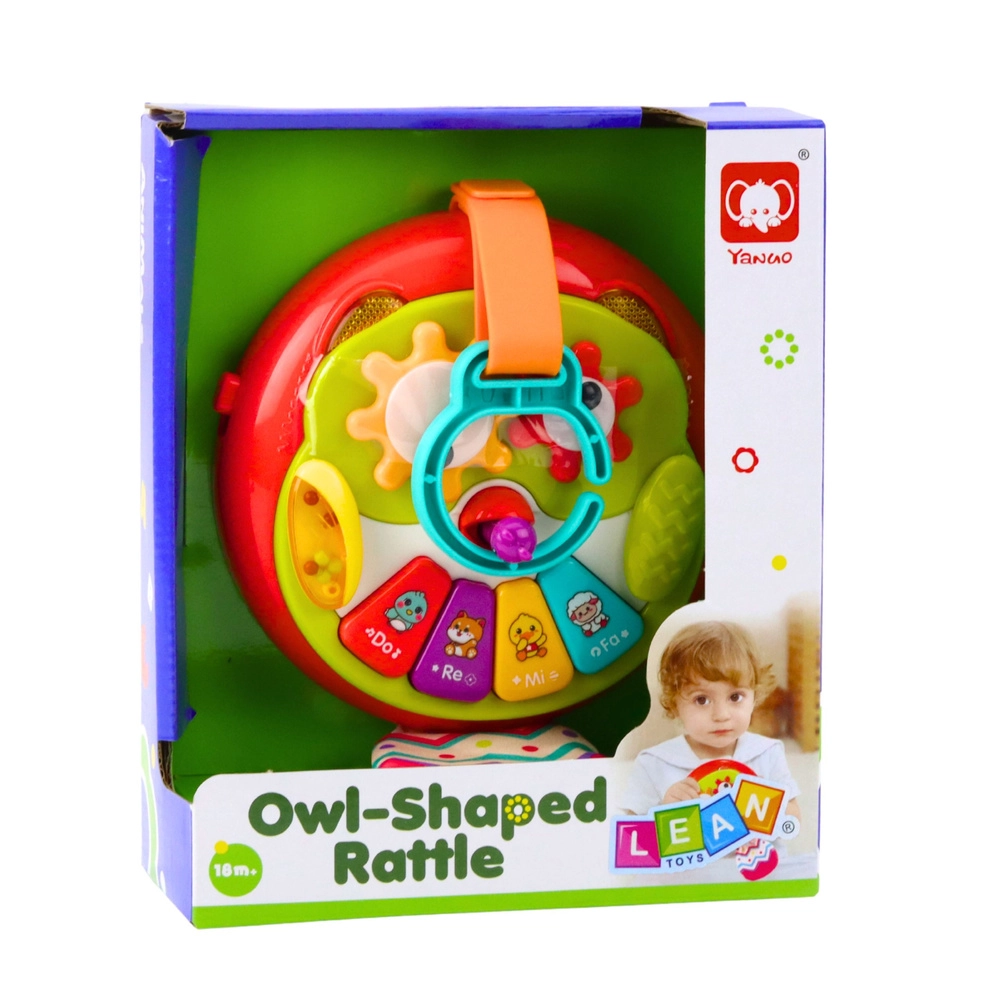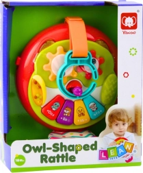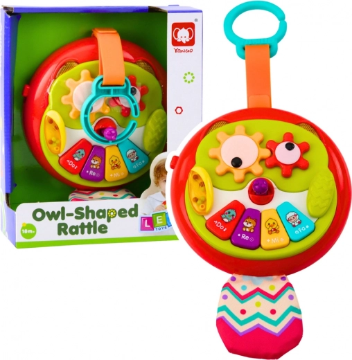 Sul pancino del gufo c'è un pianoforte colorato con note che, quando premuti i tasti, suona melodie piacevoli, supportando lo sviluppo uditivo e la capacità di distinguere i toni. La coda del gufo è fatta di un materiale frusciante che stimola il tatto e l'udito. Il giocattolo è dotato di un gancio che permette di fissarlo al passeggino, alla culla o al seggiolino auto. Il giocattolo è alimentato da due batterie AAA (non incluse nella confezione) e grazie alle sue dimensioni compatte è ideale anche per i viaggi.