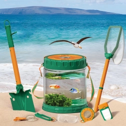 Il set universale del Piccolo Esploratore di Natura incoraggia l'istruzione all'aperto e il gioco. Esplora i segreti del giardino, del bosco o della spiaggia con strumenti speciali come contenitore per insetti, rete e pinze. Questo set è un ottimo modo per promuovere la passione per la scienza e la natura.
