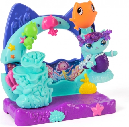 Questo set di gioco con balcone sottomarino trasforma ogni momento in un’avventura miagol-mentosa. La base stabile con coralli, meduse e accessori è perfetta per storie imaginative, mentre la dolce fata-gattina marina Pesciolina diventerà il nuovo personaggio preferito dei bambini.