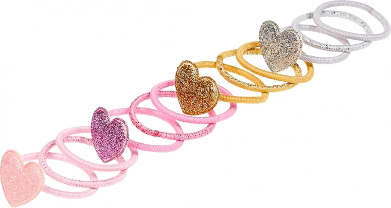 Souza! elastici colorati per capelli portano gioia e stile alle acconciature dei bambini. Ogni set contiene 12 elastici, alcuni dei quali decorati con piccoli cuoricini scintillanti, ideali per l'uso quotidiano e le occasioni speciali.