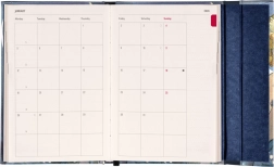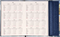L'agenda include anche panoramiche mensili, ideali per pianificare vacanze e ferie, e contiene festività internazionali.