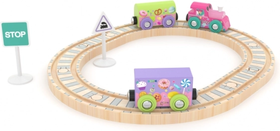 Questo set ferroviario in legno è la prima ferrovia ideale per i più piccoli. Grazie ai colori accattivanti e al design pensato per le bambine, coinvolge facilmente i bambini nel gioco e sviluppa la loro immaginazione. I materiali sono rispettosi della natura e privi di sostanze chimiche, per un gioco sicuro ogni giorno.