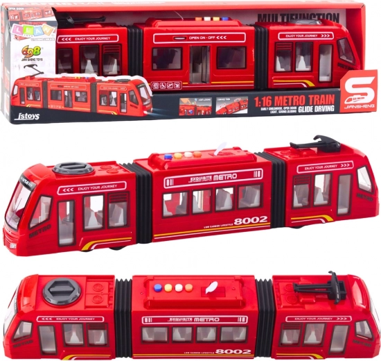Il metro è dotato di effetti di luce e suono che si attivano tramite pulsanti sul tetto. Simulano suoni di guida realistici e luci lampeggianti, arricchendo ogni viaggio. I giunti mobili permettono al metro di muoversi nelle curve come un vero vagone multi-guscio. Porte apribili aggiungono realismo al giocattolo, permettendo l'ingresso e l'uscita dal treno.