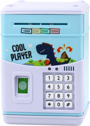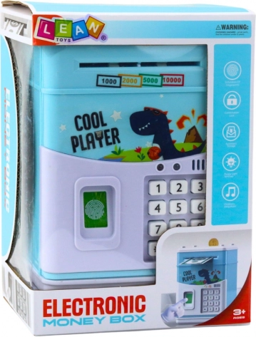 Questa cassaforte elettronica è un giocattolo ideale per i bambini dai 5 anni in su, che combina un design moderno con un motivo colorato di dinosauro. I bambini possono inserire il codice corretto e 'scansionare' il dito con un adesivo simulato, il che stimola la loro immaginazione e aggiunge realismo al gioco. La cassaforte attira automaticamente le banconote e consente l'inserimento manuale delle monete, che rende il gioco più vario.