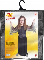 Trasforma il tuo bambino in un'affascinante strega con questo costume nero. Il costume è realizzato con abito decorato da maniche trasparenti, che presentano un motivo a ragnatela per un autentico aspetto da strega. Perfetto per feste di Halloween o celebrazioni a tema.