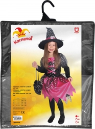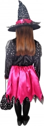 Costume magico per piccole streghe! Questo costume nero e rosa è ideale per bambine dai 4 ai 6 anni, decorato con nastri rosa e stelline argentate.
