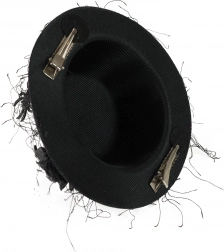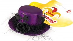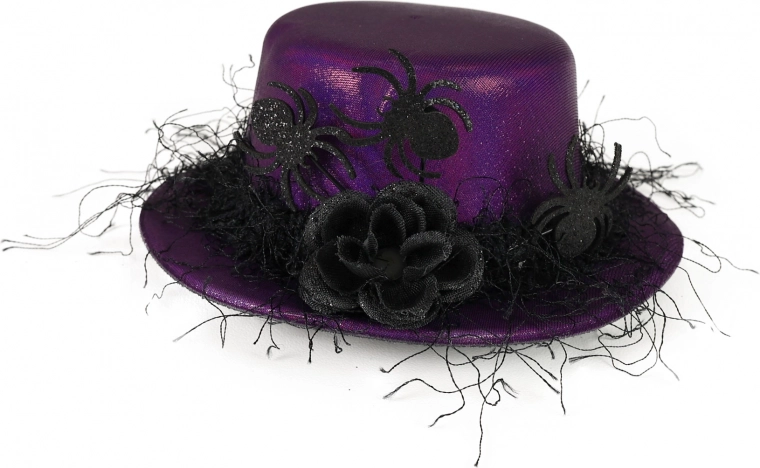 Acquista questo stiloso mini cappellino, che aggiunge eleganza e originalità. Il fresco colore viola abbinato al nastro nero e al fiore rende questo accessorio ideale per occasioni speciali o feste a tema.