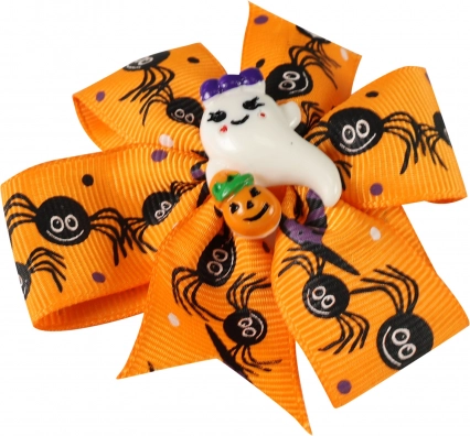 Clip per capelli arancione con fantasma, accessorio perfetto per Halloween, originale e facile da usare. Aggiungi stile al tuo look.
